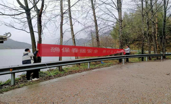 圖13 芷江縣水運(yùn)事務(wù)中心工作人員在重點(diǎn)渡口碼頭顯要位置處懸掛春運(yùn)安全橫幅