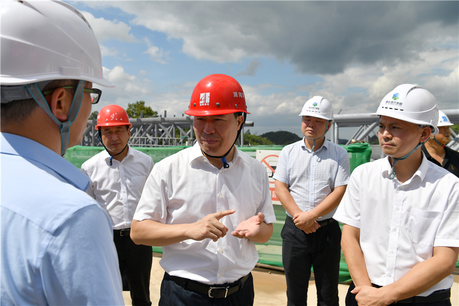 9月19日上午,市委副書記、市長(zhǎng)黎春秋調(diào)研鶴中一體化重點(diǎn)建設(shè)項(xiàng)目。圖為黎春秋在市生活垃圾焚燒發(fā)電項(xiàng)目調(diào)研。(懷化日?qǐng)?bào)全媒體記者 張卓 攝)