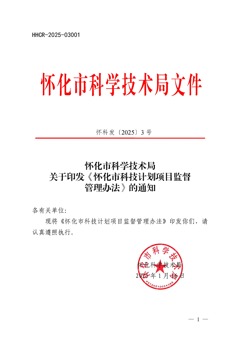 懷化市科學(xué)技術(shù)局關(guān)于印發(fā)《懷化市科技計(jì)劃項(xiàng)目監(jiān)督管理辦法》的通知