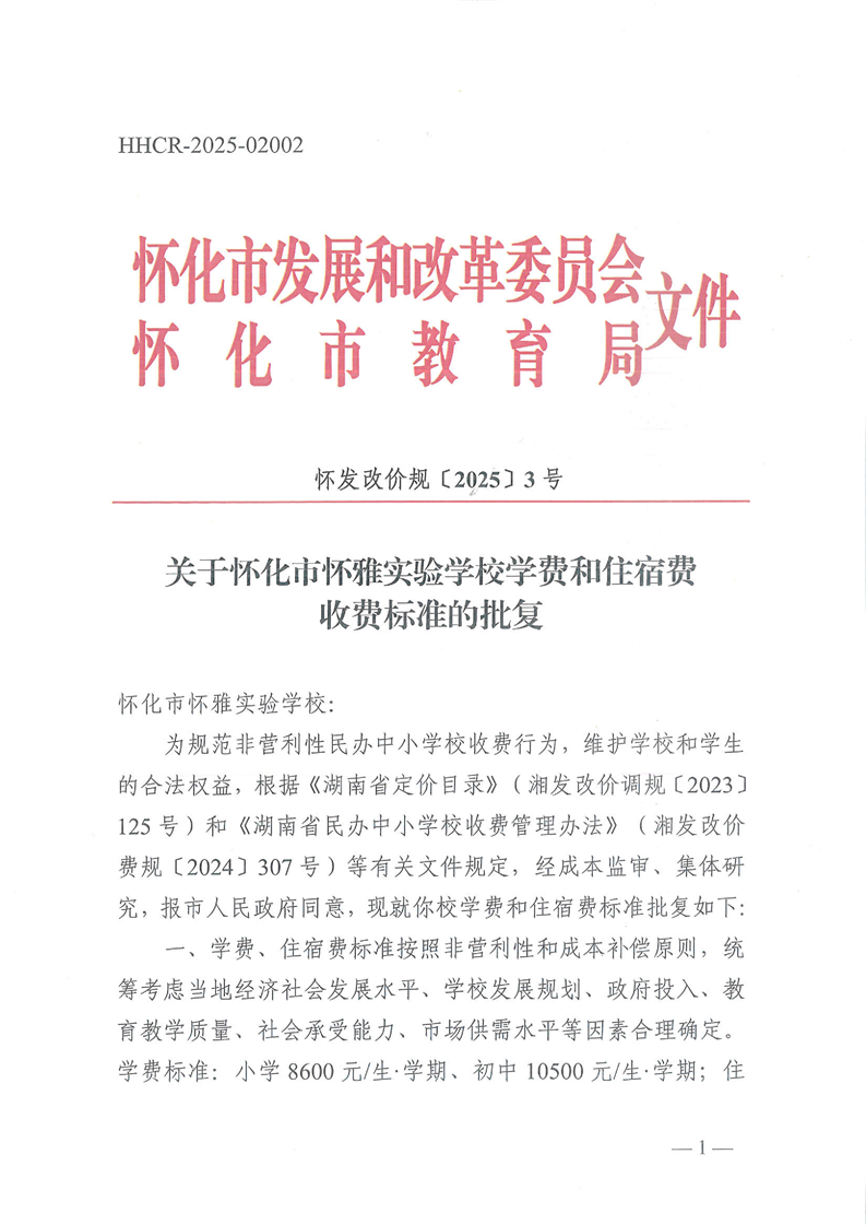 關(guān)于懷化市懷雅實(shí)驗(yàn)學(xué)校學(xué)費(fèi)和住宿費(fèi)收費(fèi)標(biāo)準(zhǔn)的批復(fù)