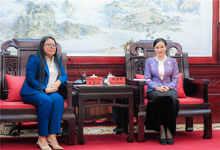 韋朝暉對凱素林一行的到來表示歡迎。她說,懷化是一個福氣滿滿的福地城市、充滿驚喜的寶藏城市、充滿活力的潛力城市。近年來,在湖南省委、省政府的堅強(qiáng)領(lǐng)導(dǎo)下,懷化加快建設(shè)國際陸港,打造對接RCEP的戰(zhàn)略平臺,不斷加深與RCEP成員國交流合作,已開通中老、中越、中緬等7條國際物流大通道,懷化國際陸港公海聯(lián)運(yùn)跨境卡車班列可達(dá)緬甸清水河口岸,2024年懷化赴緬甸合作開展了雜交水稻育種項目,雙方合作空間廣闊、潛力巨大。希望緬甸駐南寧總領(lǐng)事館介紹更多緬甸企業(yè)、商協(xié)會來懷開展經(jīng)貿(mào)交流合作,實現(xiàn)互惠共贏。