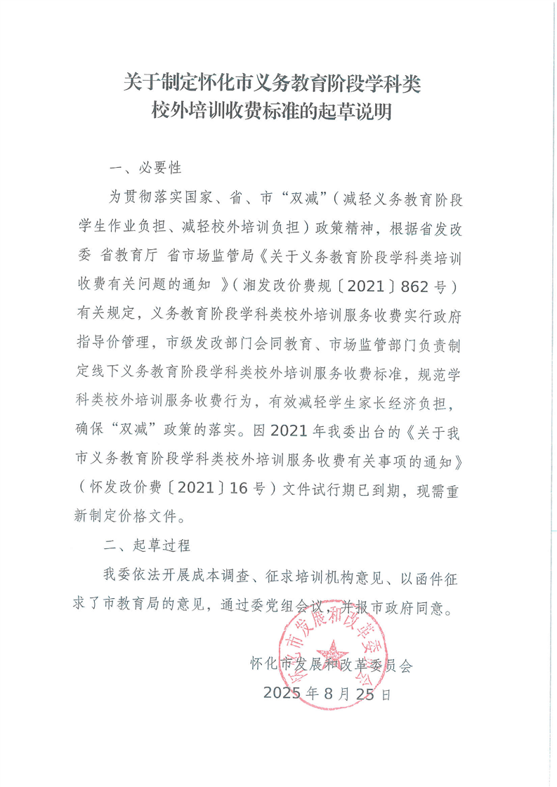 懷化市發(fā)展和改革委員會解讀《關于懷化市義務教育階段學科類校外培訓收費有關問題的通知》